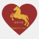 Goldenes Lotus-Blumenblatt-Muster-Pferd auf Herz-Aufkleber