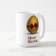 Eine elegante und moderne Osterdarstellung mit einem goldenen Osterei mit rotem Bug.