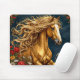 Ein zauberhaftes Bild eines goldenen Pferdes mit fließender Mähne, die von pastellfarbenen Blume geschmückt ist und Schönheit und Eleganz hervorruft. Zeigt Details und Charme, ansprechend für Natur- und Pferdefreunde.