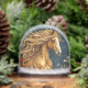Goldenes Pferd mit blühender Mane Schneekugeln