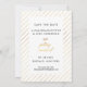 Dieses elegante Save the Date bietet schimmernde Schrift in Imitate Goldfolie mit gestreiftem Backer und viel Platz für zusätzliche Hochzeitsinformationen, wie Ihre Hochzeitswebsite oder Unterkunftsdetails. Laden Sie Ihr eigenes Foto hoch und passen Sie die Informationen an, um Ihre Hochzeitsdetails einzuschließen.