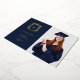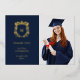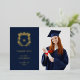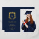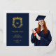 Diese schlichten und eleganten Dankeschön-Karten verfügen über ein vergoldetes Wappen mit dem Monogramm in der Mitte und einen modernen Goldfolientext auf einem dunkelblauen Hintergrund. Es gibt einen Platz, um Ihr Foto hinzuzufügen, sowie Platz für eine persönliche Nachricht auf der Rückseite. Ein elegantes und modernes Aussehen für den Absolventen.