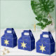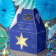 Goldenes Weihnachtsstern-Blau Bokeh Geschenkschachtel