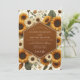 Embrace the warmth of a rustic affair with this earthy botanical design. A dense pattern of goldenrod and cream sunflowers blooms alongside delicate wildflowers and muted green foliage. The rich, warm color palette creates a cheerful and vintage-inspired atmosphere for your special day.