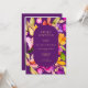 Fett Fall überdimensionales florales Aquarell Foto Sweet 16 Geburtstagseinladung mit rosa, lila, gelb, grüne Farben und fett abstrakte Blume und eine geometrisch abgerundete Rechteck Form, in Gold und lila, fügen Sie Ihr Foto auf der Rückseite.