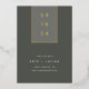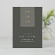 Ein schlichtes und elegantes Save the Date-Design für moderne Paare, mit einem geometrischen Element aus Goldfolie, das Ihr Hochzeitstag mit einem Ton auf dunkelgeräuchertem olivgrünem Hintergrund verbindet. Personalisieren Sie Ihre Namen, Ihren Hochzeitsort und Ihre Website oder weitere Details am unteren Rand.