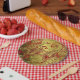 goldfarben, rot und schwarz glänzend gefärbt pappteller