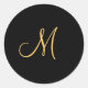 Goldfarbene Anfangsbuchstaben M auf schwarzen Mono Runder Aufkleber
