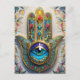 Goldfarbene Filigree Blaugrün, drittes Auge Hamsa Postkarte