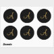 Goldfarbene Initial A auf schwarzen Monogramm-Aufk Runder Aufkleber