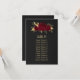 Romantische bordeauxrote Blume und goldene Blätter schwarze Sitzkarte. Die Einzelheiten des Glitzer werden simuliert