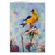Ein heller Goldbarsch und schwarzer Amerikaner Goldfinch sitzt auf einer Dickenstange, mit einem abstrakten warmen Sommerhimmel hinter ihm. Dies ist eine Reproduktion eines originalen Ölgemäldes. Die Farben Gold, Schwarz, Orange und Weiß für den Vogel, Lavendel, Blau, Gelb und Grün für den Hintergrund. Die Sickelknospen geben ein wenig Cranberry Rot, was sich schön mit dem warmen Gold im Vogel kontrastiert. Schön! Das Originalgemälde wird vom Künstler rechts unten signiert. Die Innenseite dieser Karte wird für Ihre eigene Nachricht leer verlassen.