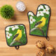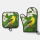 Goldfinch in Dogwood Blossoms Original Vogelkunst Ofenhandschuh & Topflappen-Set