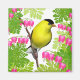 Originelles Kunstdesign einer amerikanischen Goldfinch in den Blume des Bleding Heart Gardens von Carolyn McFann, gedruckt auf einem hochwertigen Magneten für alle, die Vögel lieben.
