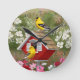 Goldfinken und Niedliche Hütte Birdhouse Runde Wanduhr