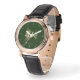 Uhr, Klassische Damenuhr mit schwarzen Lederarmband