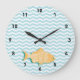 Goldfisch auf Aquarela-Zickzack Große Wanduhr