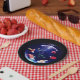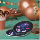 Eine Goldschale mit orangefarbenen Goldfischen, die im Wasser schwimmen und kleine, funkelnde Blasen. In Schwarz, Blau, Orange und Weiß. Niedlich.
