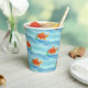 Serve drinks in cheerful style with these goldfish birthday party paper cups, featuring bright orange goldfish swimming in playful bowls against a fun blue wave background.