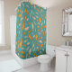 Farbige Goldfische schwimmen in einem Becken mit blauem Wasser auf diesem Duschvorhang.