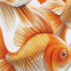 Goldfish Tapete und Vorhang Dieses spielerische und lebendige, nahtlose Muster bietet orangefarbene und weiße Goldfische, die anmutig über einen weißen Hintergrund schwimmen. Das Muster ist ideal, um jedem Raum eine Touch von Launen hinzuzufügen, und es eignet sich besonders gut für Kinderzimmer oder Räume, in denen man will, eine fröhliche und einladende Atmosphäre zu schaffen.