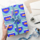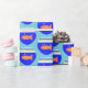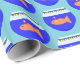 Dieses phantastische Verpackungspapier bietet einen lustigen orangefarbenen Weihnachtsgoldfisch mit einer festlichen Weihnachtsmannmütze. Der Goldfisch schwimmt im blauen Wasser seiner Goldfischschüssel. Der Fisch hat oben auf der Schüssel mit roten und grünen Fahnen geschmückt, die die Nachricht "Merry Fishmas" ausdrücken. Dieser lustige saisonale Fisch ist bereit für ein großes Weihnachtsfest Party.