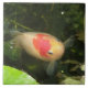 Diese phantastische Kachel zeigt ein Foto eines nosiven Goldfisches, der aus seiner wasserreichen Welt aufstarrt und sich fragt, was los ist. Der Fisch ist weiß mit einer hübschen roten Markierung auf dem Kopf.