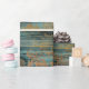 Eine bedrückte Blume, die wie ein Schablonenmuster aussieht, überlagert einen Hintergrund aus blau-grünem rustikalem Holz. Ideal für decoupage Art, Papierhandwerk oder Geschenkverpackung. Bitte sehen Sie die "Naht"-Bildvorschau, um sicherzustellen, dass sie akzeptabel ist.