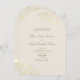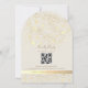 Elegante gewölbte Hochzeitseinladung mit zartem goldfarbenem Blumenwerk auf Elfenbeinhintergrund mit QR-Code auf der Rückseite für UAWG- und Internetzugang. Romantisch und modern mit Vintager Drehung - perfekt für zeitlose, formelle Hochzeitsfeiern.