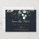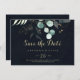 Diese goldene Blütenkalligraphie blaue horizontale Hochzeit retten das Datum ist perfekt für eine rustikale Hochzeit. Dieses künstlerische Design zeigt handgezeichnet goldene Blüten- und Aquarellblütenblätterung in einem dunkelblauen Hintergrund und inspiriere die natürliche Schönheit.
