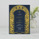 Elegant, schick und schreiend die rauschenden 20er Jahre, die Gold Foil Art Deco Inspirierte Hochzeitseinladung wird sicher hinzufügen, dass extra glänzende Touch, um Ihren besonderen Tag zu erklären. Der dunkle Marinehintergrund verleiht der Eleganz und macht die Goldfolie noch mehr auffällig.