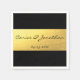 Luxuriöse Hochzeitserviette in schwarz mit Imitat goldenen Folie mit individualisierbaren Namen und Datum der Ehe.
