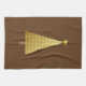 Ein vereinfachtes, modernes Handtuch mit klassischen Weihnachtsbaummotiven, vergoldetem Gefälle / Brokat, in antiken Blumentapeten, auf schokoladenbraun