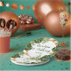 Feiern Sie stilvoll mit diesen stilvollen und sehr trendigen Hochzeitszeitung-Tellern. Das Design besticht durch einen schicken, gestreiften Hintergrund mit goldfarbenen und weißen Folieneffekten, tropischen Palmen-Blätter und passenden Formulierungen in grüner Farbe.. atemberaubend und perfekt für alle, die eine Hochzeitsfeier zu einem Ziel oder zum Thema Strand planen. Das Design lässt sich leicht mit Ihrer speziellen Veranstaltungssprache personalisieren und Ihre Gäste werden begeistert sein, wenn sie diese fabelhaften Teller sehen.