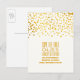 Elegante, romantische und zeitgenössische Save the Date Postkarten mit vergoldeten Imitaten konfetti Design. Bitte beachten Sie, dass dieses Design keine physische Gold Glitzer Konfetti verwendet wird es wird so gedruckt, wie Sie es auf Ihrem Computer sehen.