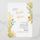 Gold Foil Watercolor Foliage Moderne Script Bridal Dusche Einladung. Weiß und mint. Kaskadierende Vegetation.