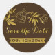 Goldfolie Vintage Pioniere Blumenhochzeit Sichern Sie den Date Aufkleber mit zerbröckelten Goldfolie wilden Peony-Blume auf braunem Hintergrund, mit dem schönen Drehbuch Schriftart carolyna. Dieses elegante, elegante und stilvolle Design ist Teil einer Hochzeitskollektion oder eines Set. Es ist ein vollständig anpassbares Template, das perfekt für eine moderne und zeitgenössische oder traditionelle Herbst/Herbst- oder Winterhochzeit geeignet ist. Beachten Sie, dass es keine echte Goldfolie gibt, sondern nur gedruckte Bilder.