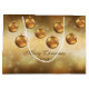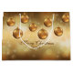Desteis originelle Illustration von goldgelben, festlichen Weihnachtsbaubeln, die ein Schneeflockenmuster auf ihnen haben. Der Hintergrund ist ein hübscher, gelber und brauner Bukett. Es gibt auch zwei personalisierbare Textbereiche.