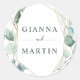 Diese Hochzeitseinladung enthält gemalte Aquarelltöne und botanisch grüne Blätter mit goldenem geometrischem Rahmen.