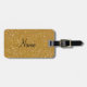 GoldGlitter-Gepäckumbau mit glänzenden Schimmern des Imitats. Personalizable Name für Mannfrauen und -kinder. Funkelnd Entwurf mit schimmernGlitzern des Fakes. Goldener Beschaffenheitsluxusentwurf für schicke Reichreise bauscht sich. Luxuriöse Hintergrund- und Skripttypographie.