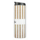 Chic-thermische Trommel getan in einem weißen und goldenen Glitter, der gestreiftes Muster schaut. Personifizieren Sie den schwarzen Text, um zu lesen, was Sie wollen. Große Geschenkidee.
