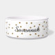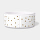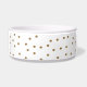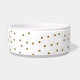 Stilvolle weiße KeramikNahrung für Haustiere/Wasserschüssel, mit Grafiken der goldenen glittery Polkapunkte. Personifizieren Sie den schwarzen Skripttext für Ihr Haustier oder als große Geschenkidee für jeden möglichen Haustierinhaber.