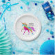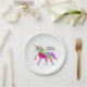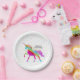 Ein Regenbogen Unicorn in einem Himmel der Polkapunkte und -Glitters… der perfekte Hintergrund für ein spezielles Geburtstagsmädchen, das an Magie und Unicorns glaubt.