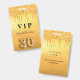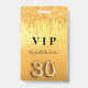 Ein modernes, stilvolles und glamouröses Abzeichen für ein 30. Party. Ein glänzender goldgelber Hintergrund mit Imitaten Glitzer Tropfen, Farbe tropfend aussehen. Der Name ist mit einem modernen handgeschriebenen Stilskript geschrieben. Mit dem Text: VIP Nummer 30 ist geschrieben mit einem ballon Stil Schriftart, Skript. Zurück: Datum des Party und der Veranstaltungsadresse.
