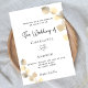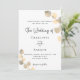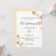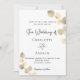 Ein weißer Hintergrund mit goldenen Eukalyptussprigs. Personalisieren und Ihren Namen und Ihre Zeremonie Details. Schwarze Buchstaben. Zurück: goldener Hintergrund
