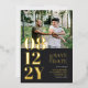 Elegante Typografie Hochzeit speichern Sie das Datum in dunkelgrau mit Ihrem Hochzeitstermin in großen Goldfolien-Zahlen auf der Seite des Save the Date. Fügen Sie Namen und Details in der Goldfolie hinzu. Goldfolie und dunkelgraue Hochzeit speichern Sie das Datum mit Foto.