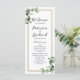 Eine grüne Eukalyptus Hochzeit Ordnung der Service-Programm-Karte. Einfach mit Ihren Daten personalisieren. Ideal für Grünpflanzen oder Brautparty zum Thema Garten. Bitte kontaktieren Sie mich per Chat, wenn Sie Fragen zum Kunstwerk haben oder eine Anpassung benötigen.