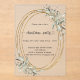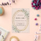 Ein mattierter Hintergrund. Ein ovales Imitat mit goldfarbenem Rahmen, der mit schlängelgrüner Vegetation geschmückt ist. Personalisieren und fügen Sie die Details hinzu. Schwarzer Text.