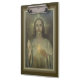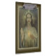 Schönes goldenes Designerklemmbrett des heiligen Herzens von Jesus. Der Künstler hatte große Schwierigkeit, die Augen zu malen. Nachdem einige Versuche, sie heraus die Augen blockierten und sich zurückzogen, um im Gebet zu Bett zu gehen. Als sie morgens aufwachte, waren die heiligen Augen des Herzens wunderbar herein gemalt worden.