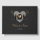 Das Gästebuch besteht aus zwei Bungalows, die auf beiden Seiten eines Goldenen Herzens stehend sind. Dieser Artikel ist Teil eines Hochzeitsvortrags-Set, das eine Hochzeitseinladung, eine rsvp-Karte und vieles mehr beinhaltet. (Die Goldelemente im Set sind Imitat, Gold und nicht Goldfolie.)